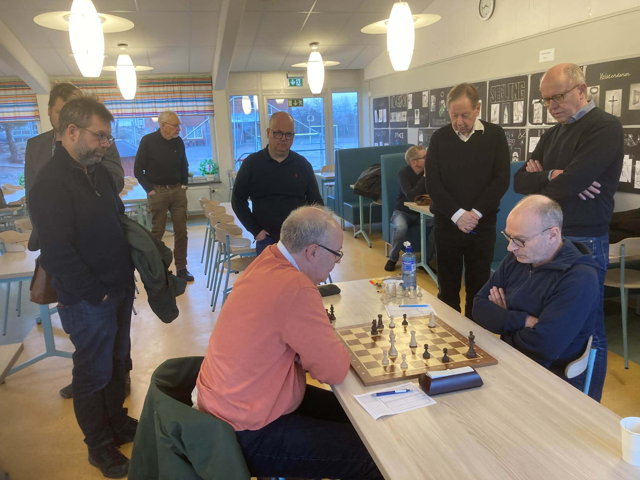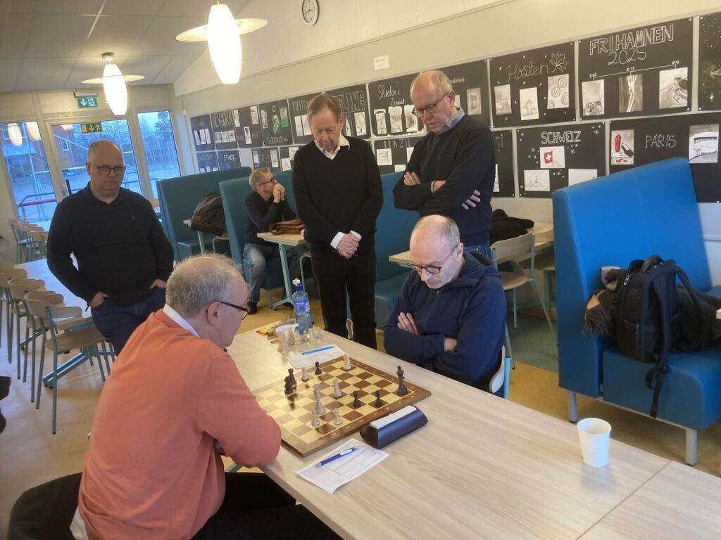 Idag skulle det avgöras för både första- och andralaget. Förstalaget hade ju en match om seriesegern mot SK Passanten det gamla elitlaget som nu hade ledningen med en matchpoäng före UASS. Matchen blev både jämn och tuff. Efter en snabb remi på förstabordet tog UASS därefter ledningen med först en snabb seger och sedan en ytterligare seger av Jonathan Bernhard som svarade för ett fint angreppsparti. Men sedan var det slut med det roliga ett tag. Passanten reducerade och Thomas Marttala såg ut att vara riktigt pressad.